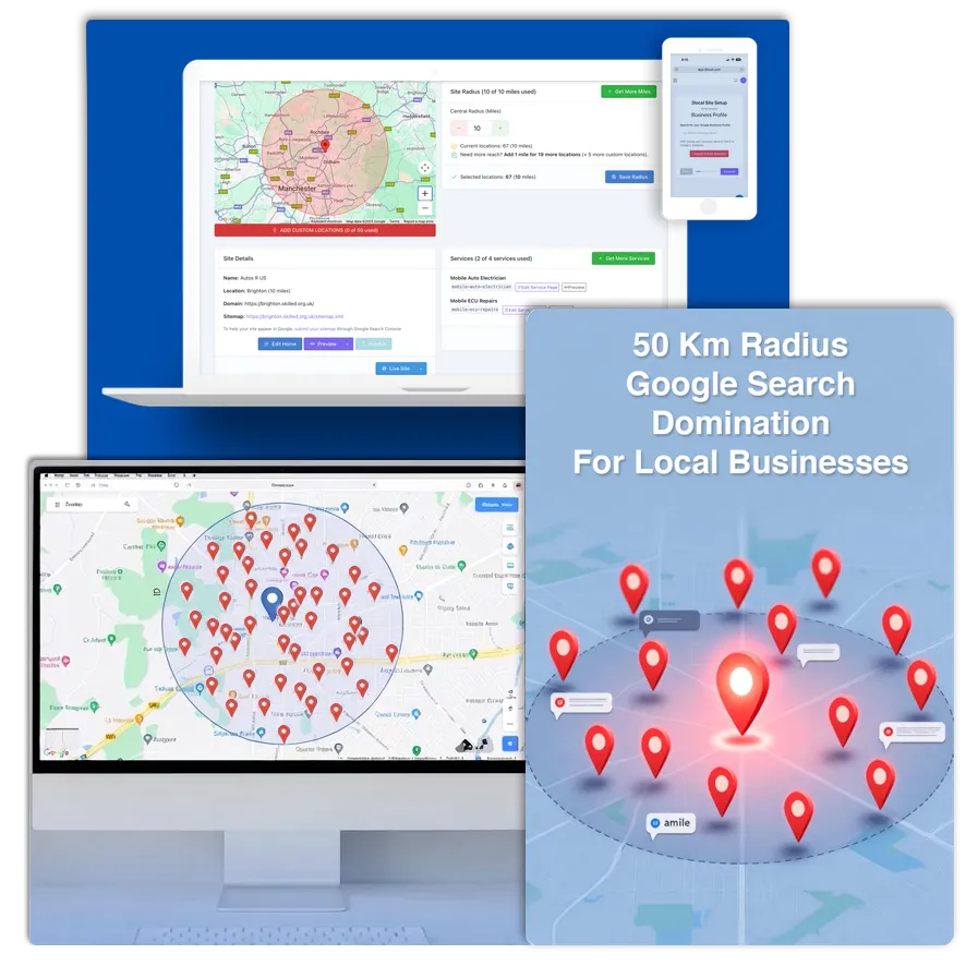 We'll rank your business using "Dynamic Service Pages" top of Google search within a 50 Kilometers radius from your business!